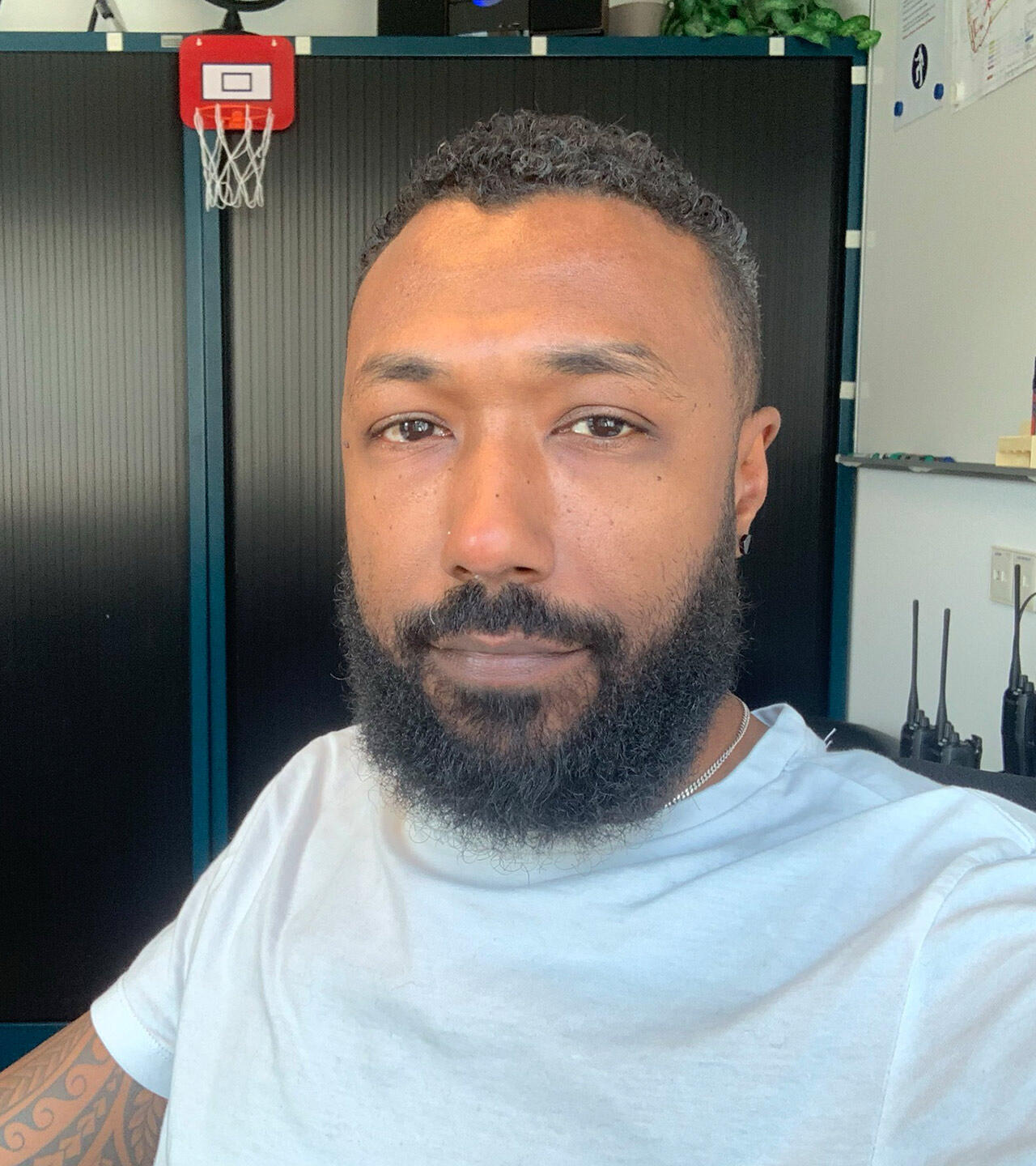 Van oorsprong ben ik elektromonteur. Na jarenlang via uitzendbureaus te hebben gewerkt en bij raffinaderijen als Shell en Q8, werd ik magazijnmedewerker. Daarna heb ik van 2001 tot 2010 bij Justitie gewerkt in de beveiliging. Toen dat vanwege een blessure niet meer kon, ben ik als geluidsengineer de muziek ingegaan. In 2016 ging ik weer bij Justitie werken, en daar heb ik geen spijt van. De Rijksoverheid heeft goede regelingen, ik noem het vastigheden, je staat hier echt niet zomaar op straat. Ook leuk: naast de dertiende maand krijgen we een individueel keuzebudget, een IKB. Extra geld dat je kunt laten uitbetalen of waar je vrije dagen van kunt kopen. Het is hier gewoon goed geregeld.